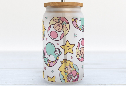 Princess Peach and co. Wrap [UV DTF - 16oz Libbey Glass Can] | Ready to Apply | Physical Item